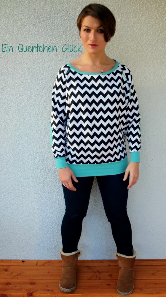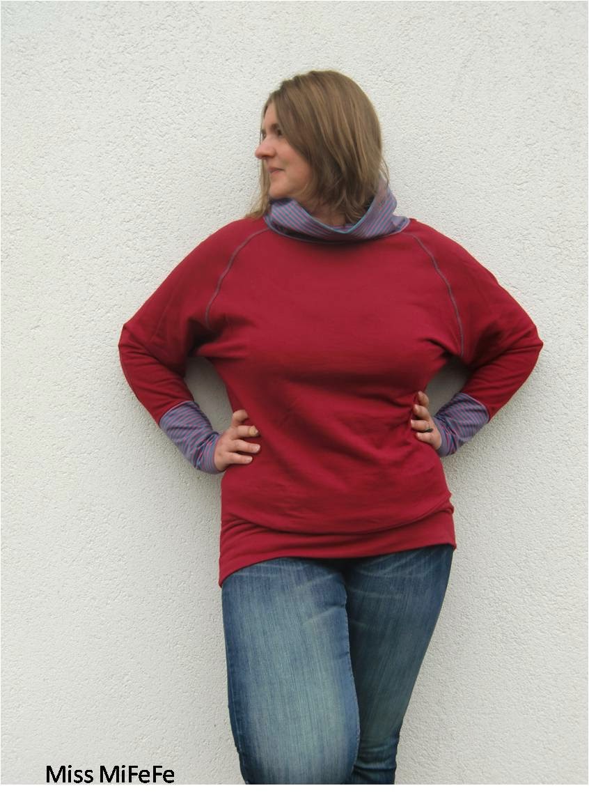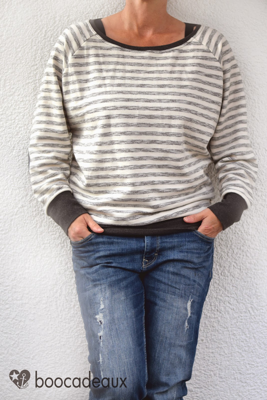 ALICE ist ein locker fallender RaglanSweater mit Fledermausärmeln in dreiviertel-Länge oder Langarm, wahlweise mit Armpatches.