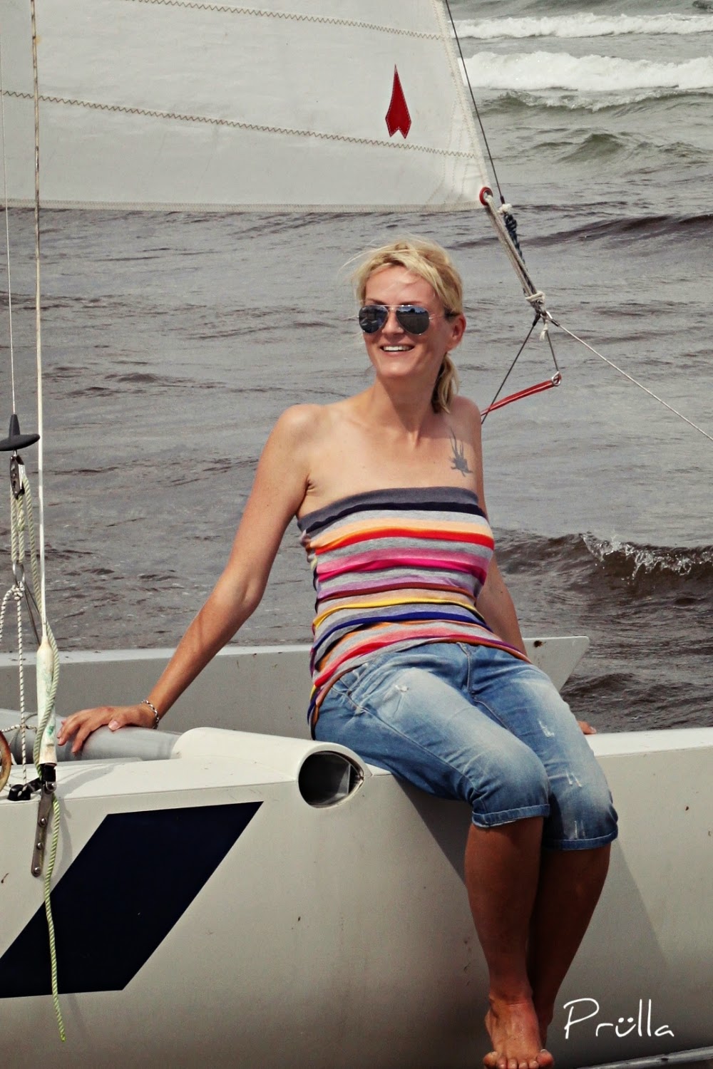 na da kann ich mich nur anschließen, ich mag zwar die Tops ohne Träger nicht so gerne an mir, aber Du siehst klasse aus, die Ringel stehn Dir super und die Kombi mit der used-Jeans und Ringel finde ich eh klasse…….und dann noch die tollen Aufnahmen am Meer…….sehr schön !!!