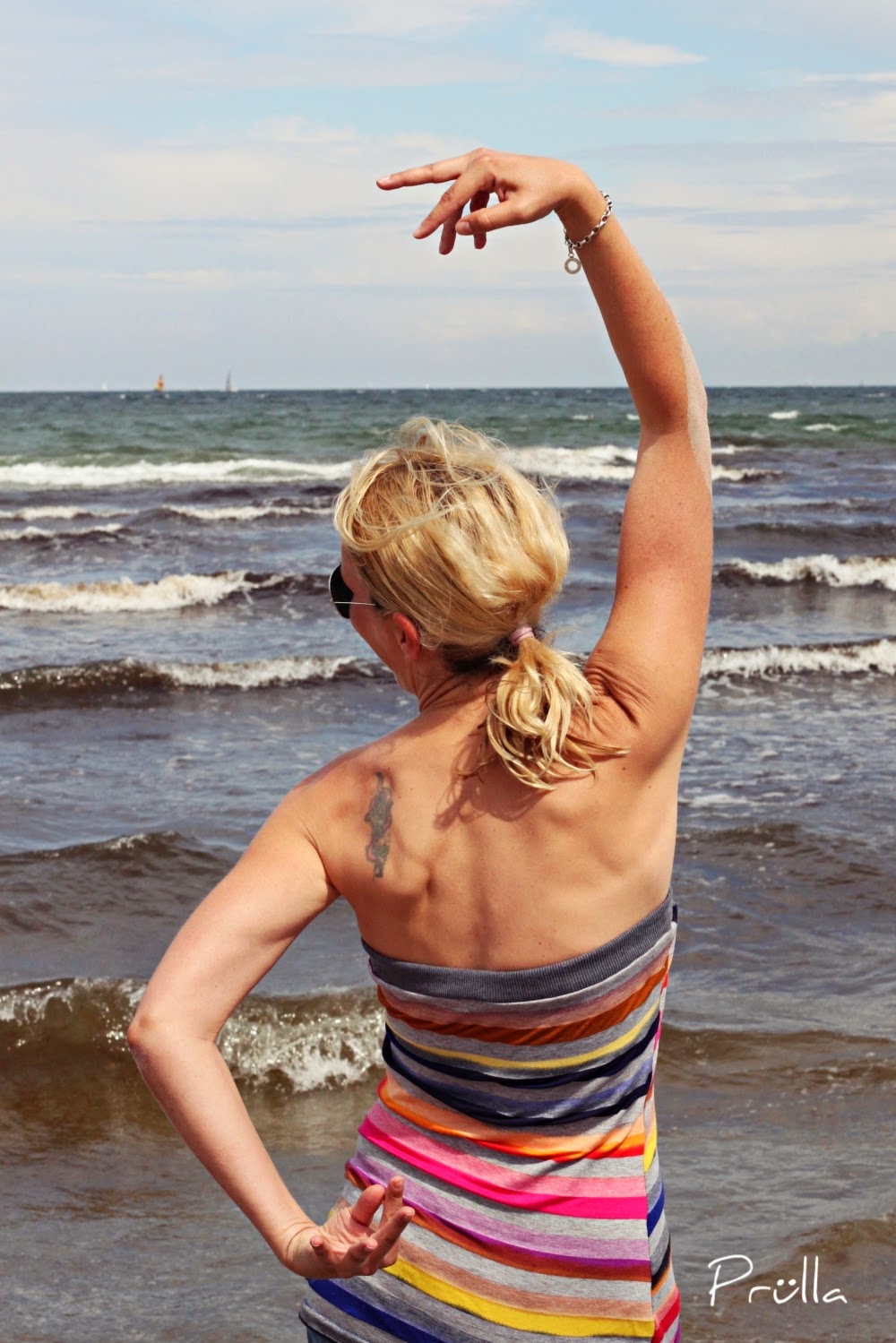 Da musste hier, auch für den im September anstehenden Italienurlaub, noch ein Tube Top genäht werden. Der Trageversuch fand dann am letzten Wochenende an der Ostsee in Scharbeutz statt: