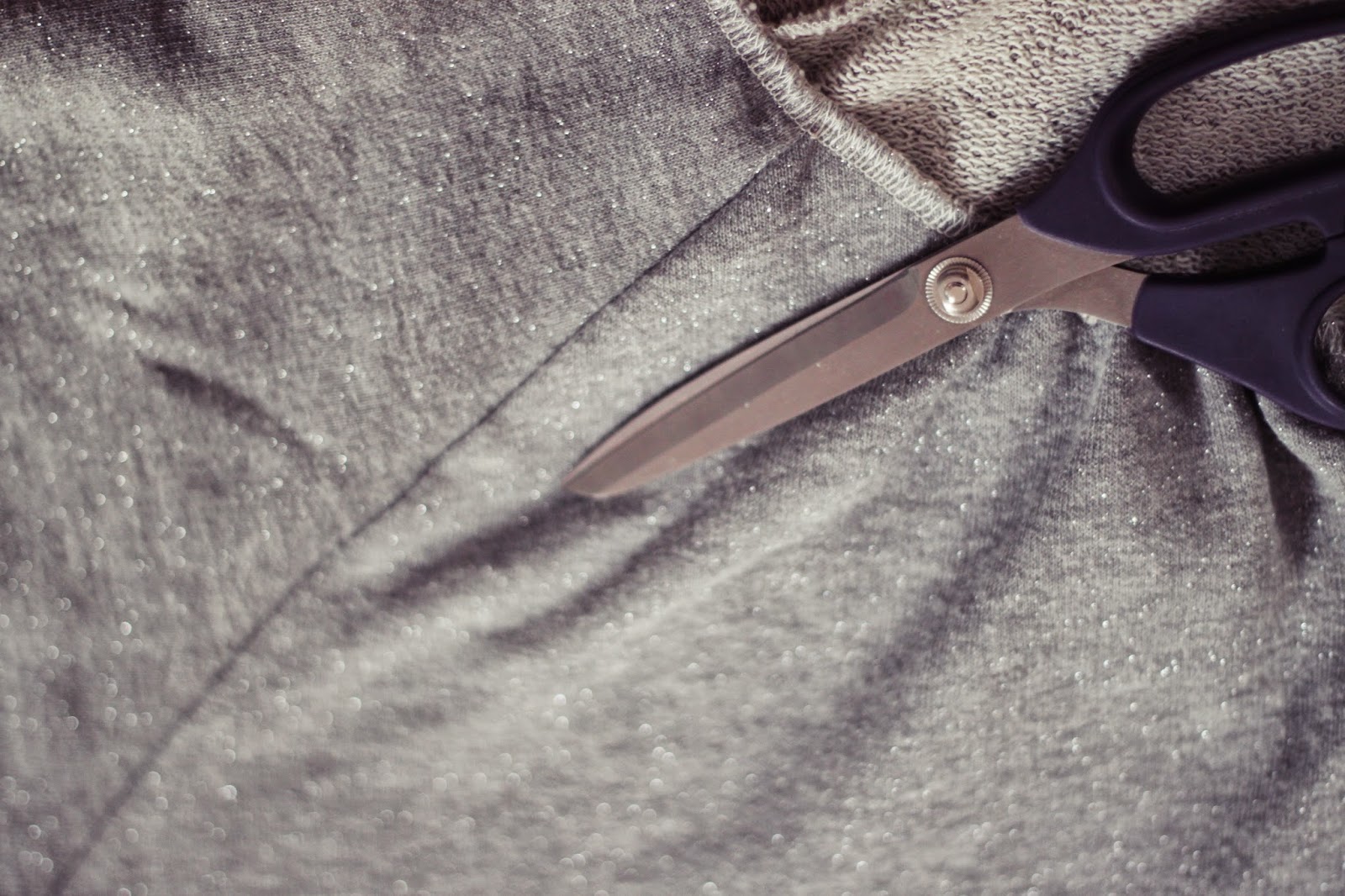 Nachdem ich die Fotos fertig hatte, hab ich dann doch nochmal die Schere in die Hand genommen und die beiden vorderen Raglannähte ein ganzes Stück (ca. 5 cm) enger genäht, in dem ich vom Vorderteil erstmal vom Halsausschnitt aus einen Keil Stoff weggeschnitten habe: