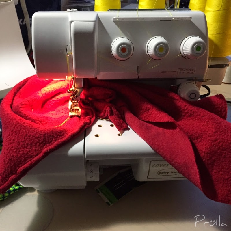 Ich bin echt total begeistert von der Coverlock. Aber erstmal wird hier (hoffentlich bald!!) eine Overlock einziehen. Und auch das Oberteil finde ich echt toal schön. Und es ist auch cool zugleich. Einfarbig und doch die richtigen akzente mit der Coverlock in rot.