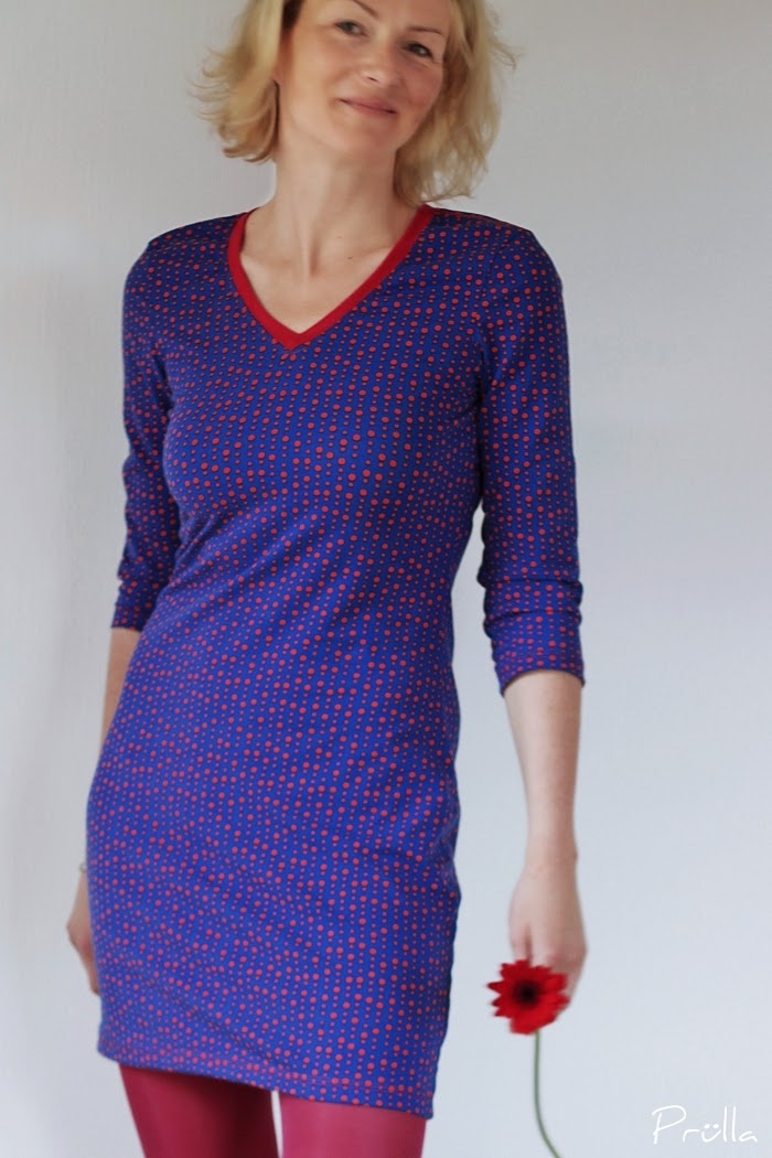 Leni PePunkt’s Shirt Nr. 1, das ich im letzten Jahr schon diverse Male als Shirt genäht habe – hier, hier und hier – wurde zum (Mini)Kleid mit dreiviertel Ärmeln.