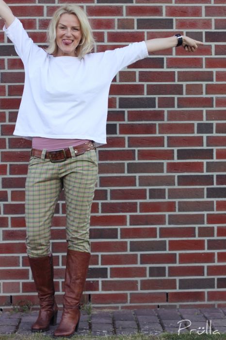 Ich finde die Hose toll. Der Jerseybund ist klasse. Ich trage nämlich sehr gern Jeggings oder Treggings, wie auch immer die Dinger richtig heißen. Wenn der Bund ein bisschen vorblitzt, hat das irgendwie was und ist viel besser als das Maurerdekolletee 🙂