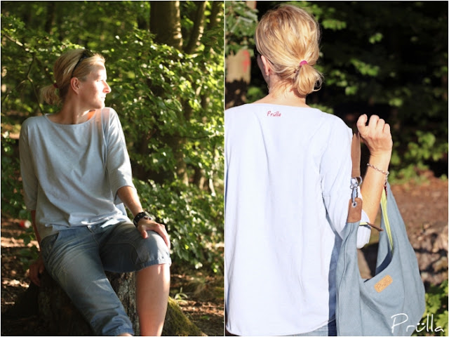 wow, einfach, schlicht und schön. Sowohl Shirt, als auch Plott, sowohl Tasche, ich liebe solche Schnitte, als auch das Label, einfach der Prülla. Gefällt mir total gut.