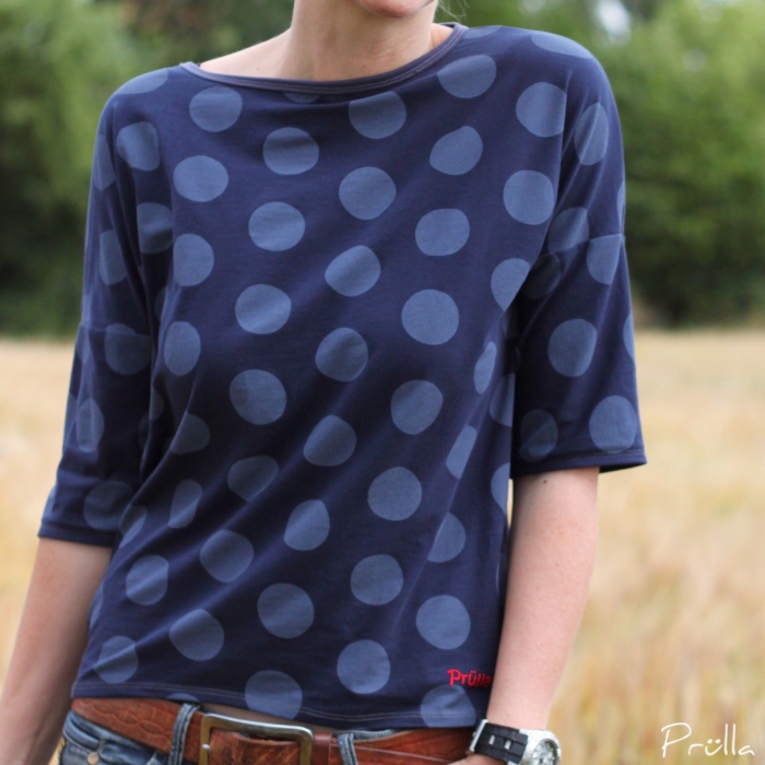 Ich find ja den Stoff herrlich! Und obwohl mir Deine Shirts nach diesem Schnitt immer sehr gefallen haben, ist diese "geschmälerte" Variante mein Favorit! Klasse wieder mal!!!