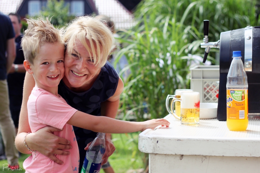 Samstag haben wir den Lieblingsmann mit einer Riesengartenparty gefeiert. Wir hatten riiiieesiges Glück mit dem Wetter. Am Freitag war uns noch das große Zelt durch den starken Wind weggeflogen und kaputt gegangen. Großes Bibbern am Samstag Morgen – bis 9 Uhr hat’s gegossen! Zum Start um 11 Uhr war alles trocken und das Kleid genau das Richtige:
