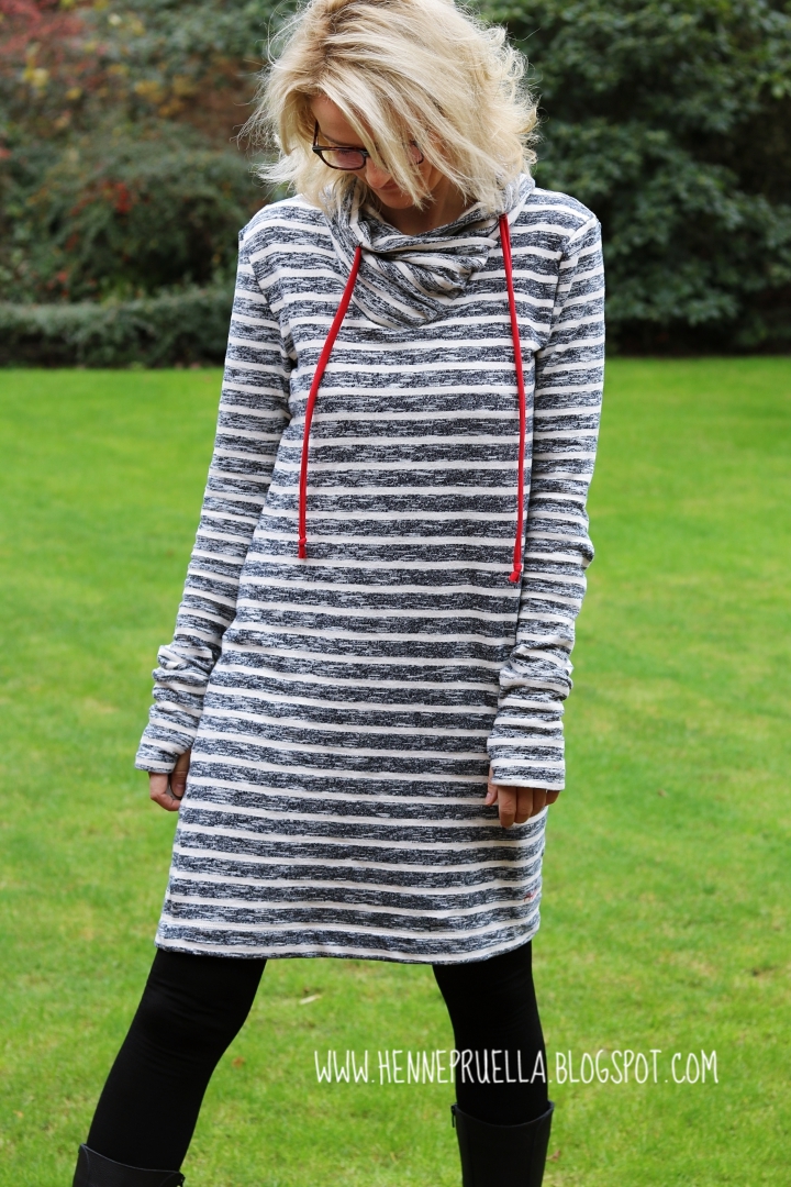 Wow! Das Kleid sieht total kuschelig aus und dabei gleichzeitig schick und fröhlich! Es gefällt mir unglaublich gut! Vor allem die Kombination aus Streifen und rotem Band, hat es mit angetan. Viel Freude am Tragen! LG, Nina