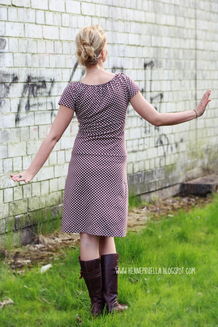 So ein schönes Kleid! Der Carmenausschnitt steht die super und der Rock schwingt so schön! Gefällt mir sehr.