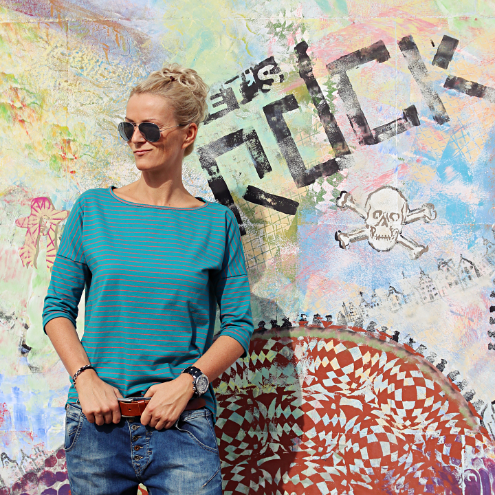 Geniales Shirt! Die Streifen bringen die überschnittenen Ärmel super zur Geltung. Deine Fotos wie immer klasse!